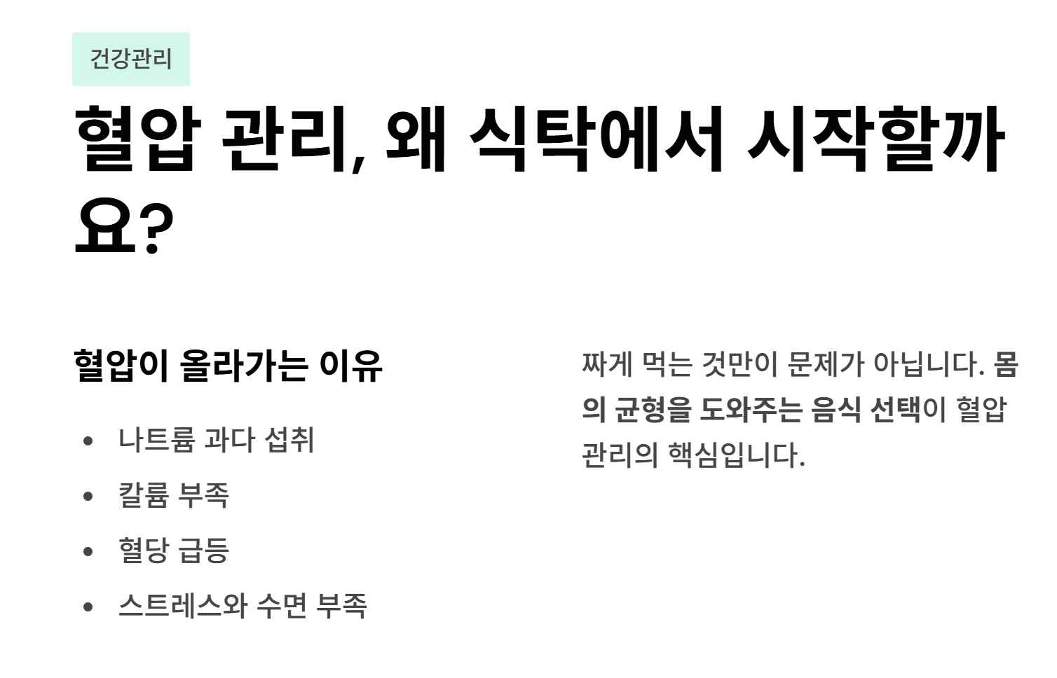 혈압 관리와는 거리가 멀어질 수 있습니다.