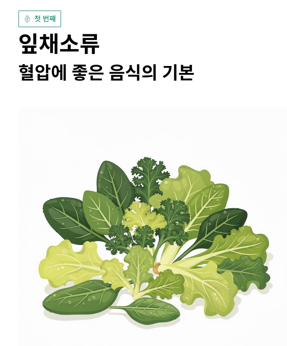 1. 잎채소류 – 혈압에 좋은 음식의 기본입니다