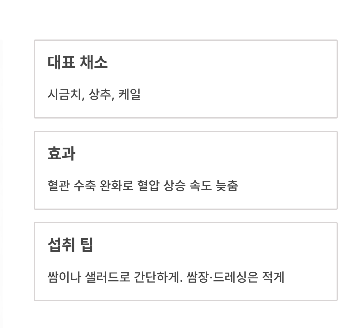 잎채소는 혈관이 과도하게 수축되는 것을 완화해