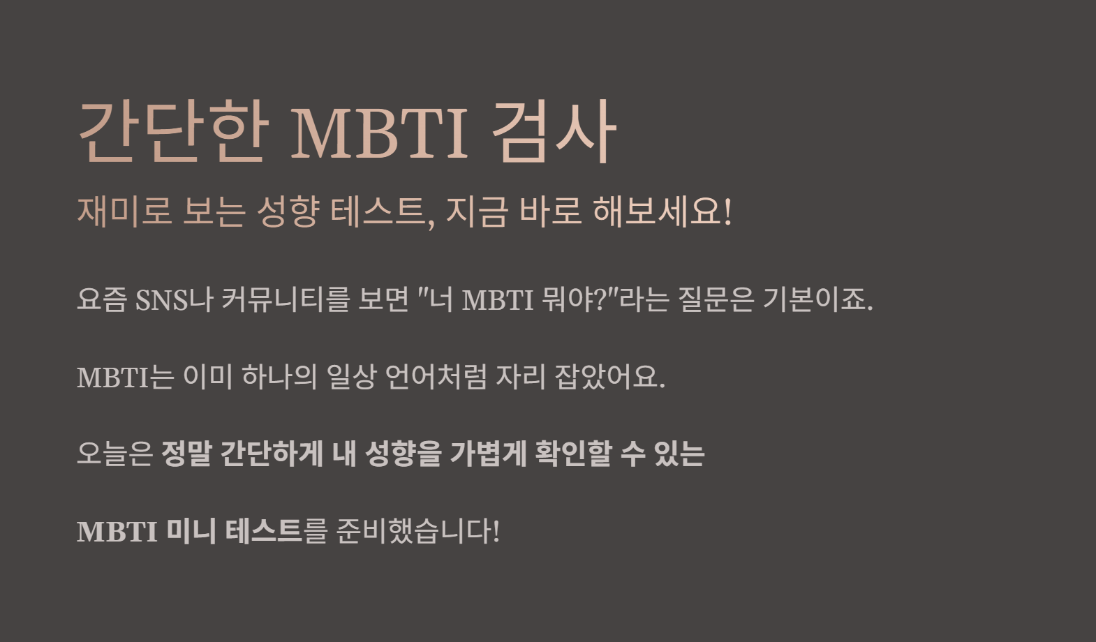 🧪 아래에서 바로 ‘간단한 MBTI 검사’를 해보세요!