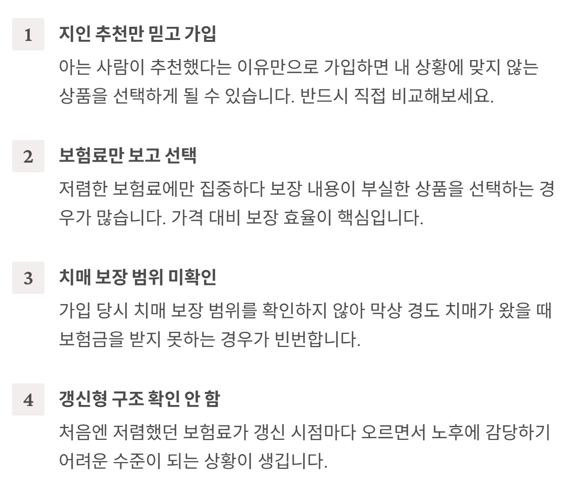 간병보험 가입 시 가장 많이 하는 실수