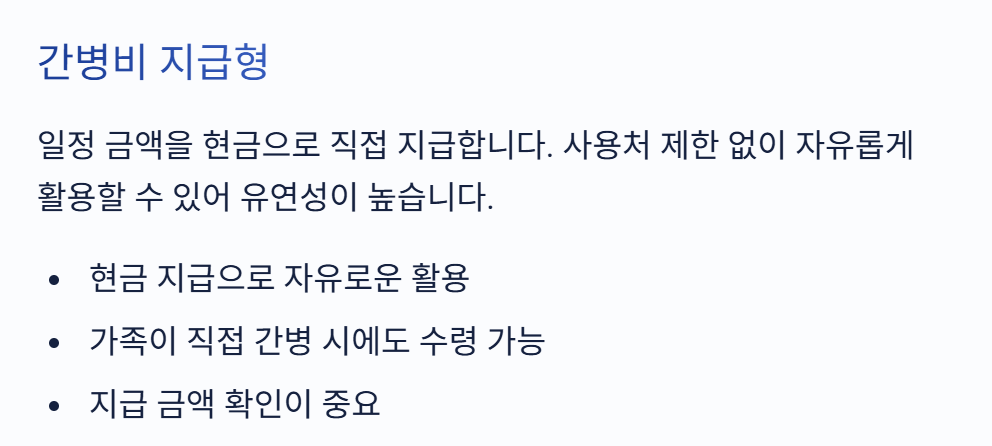 ✔️ 지급 방식 (현금 / 간병인)