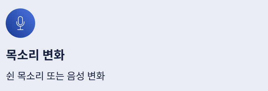 - 목소리가 쉬거나 변화됨