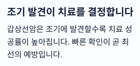👉 갑상선암은 조기 발견 시 치료 성공률이 매우 높은 질환입니다.