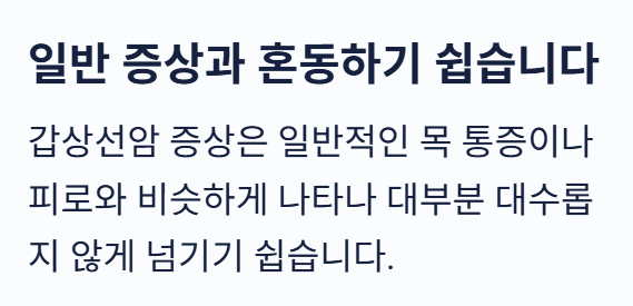 갑상선암 증상은 일반적인 목 통증이나 피로와 비슷하게 나타나는 경우가 많습니다.