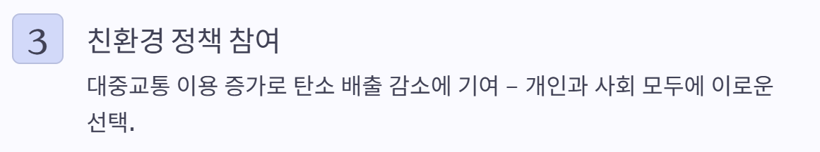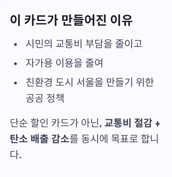 👉 교통비 절감 + 탄소 배출 감소를 동시에 목표로 만든 공공 정책입니다.