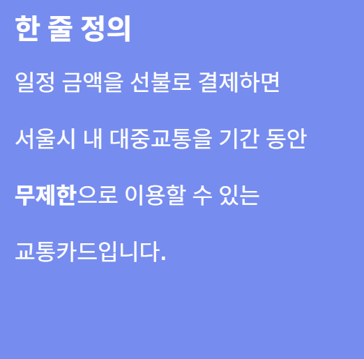 무제한으로 이용할 수 있는 교통카드입니다.