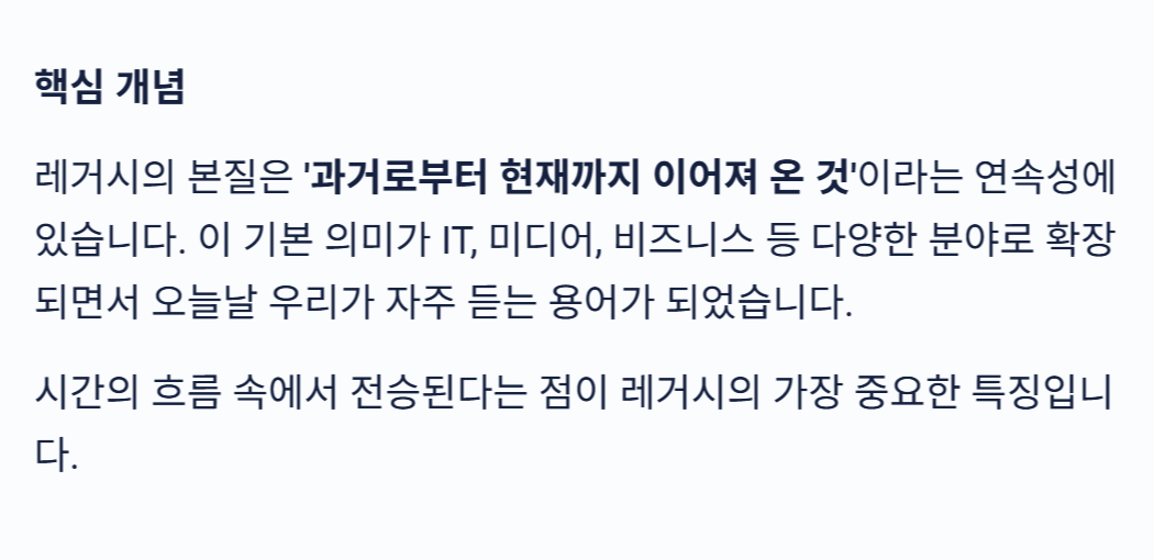 “레거시 뜻이 정확히 뭐야?”