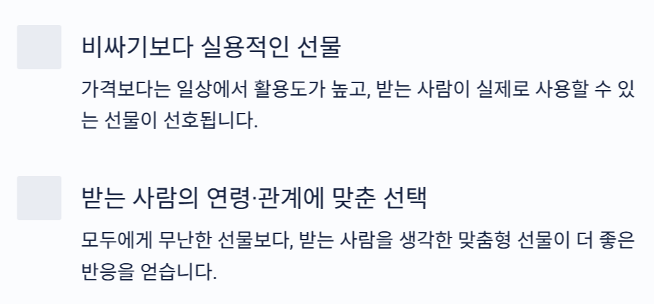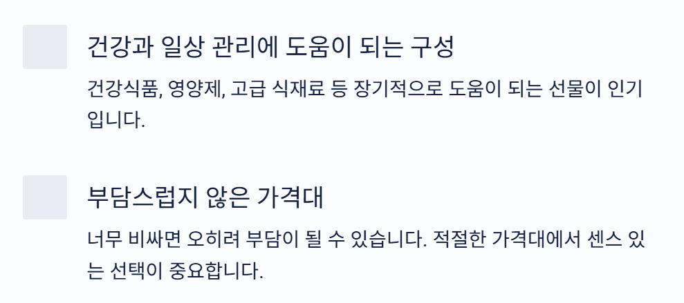 ✔ 받는 사람의 연령·관계에 맞춘 선택