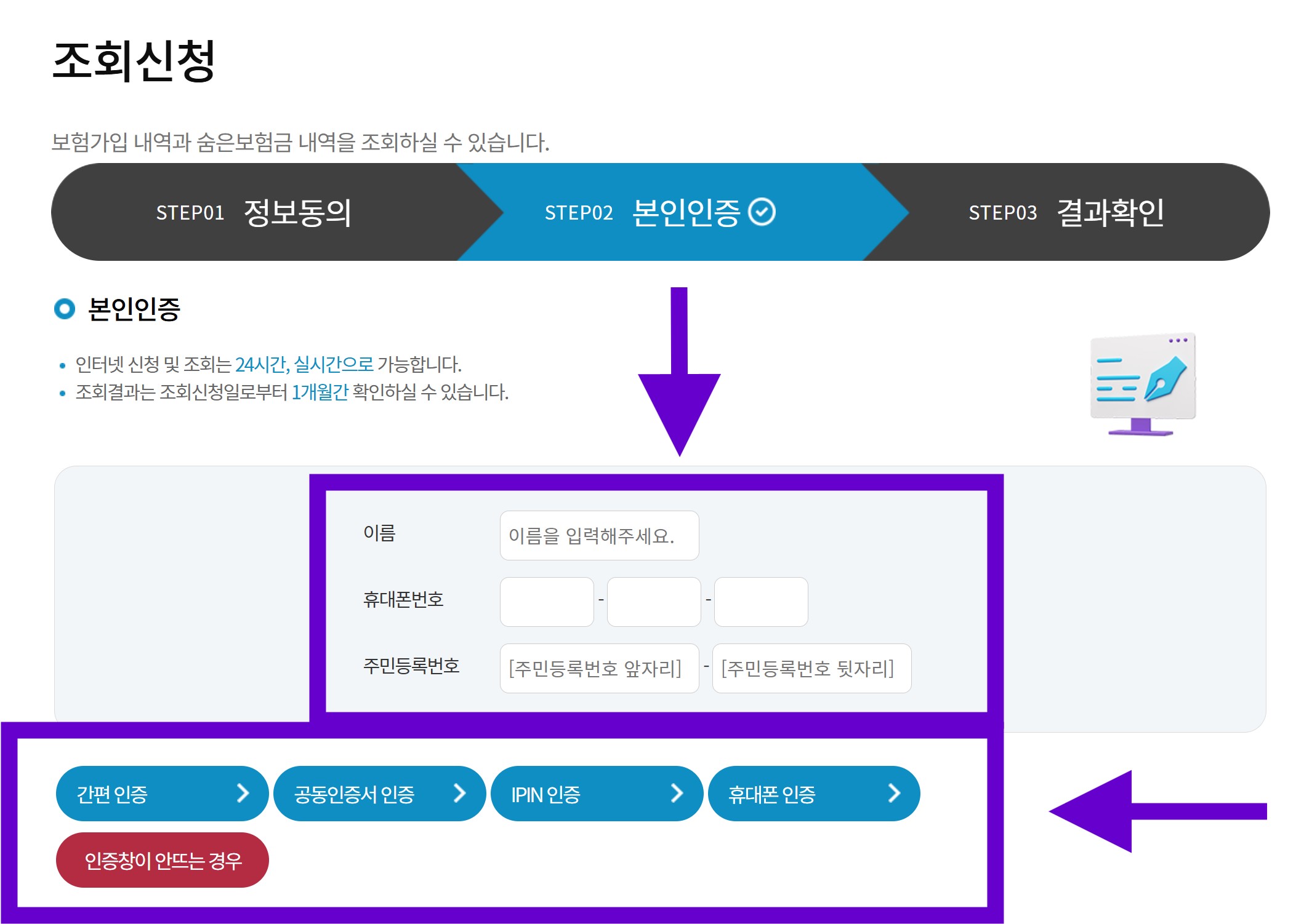 보험가입조회 실제 진행 순서