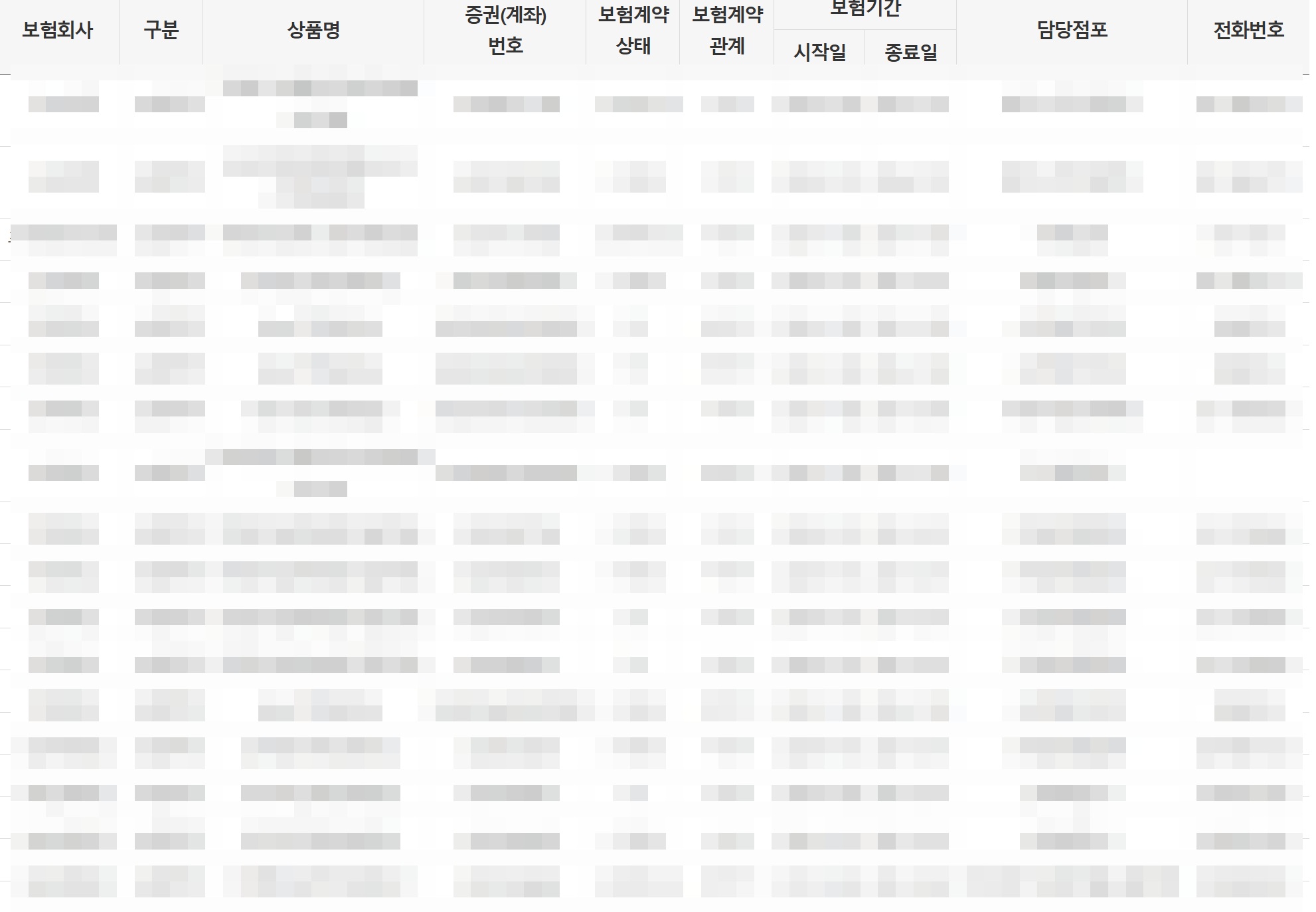 이 정보만으로도 현재 유지 중인 보험과 종료된 보험을 명확히 구분할 수 있습니다.