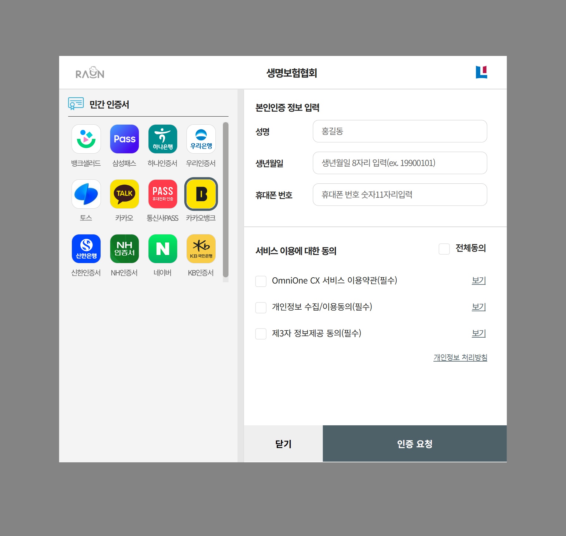 여기서는 간편인증을 통하여 카카오뱅크로 인증을 하였으니,