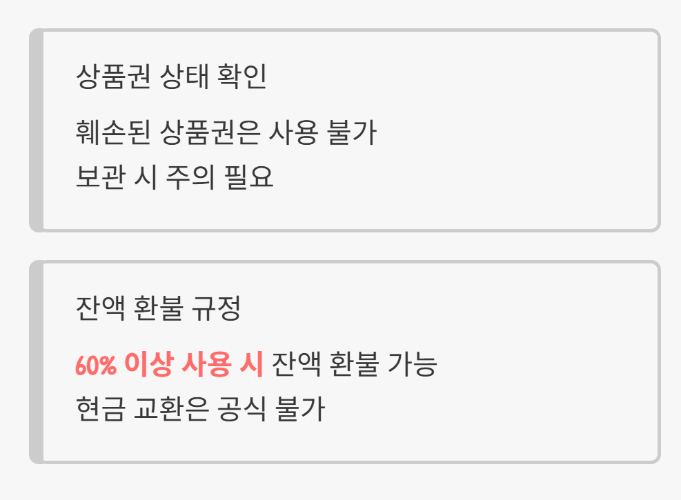 - 60% 이상 사용 시 잔액 환불 가능