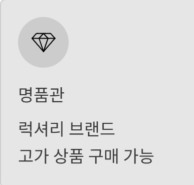 - 의류, 화장품, 잡화, 식품관 모두 가능