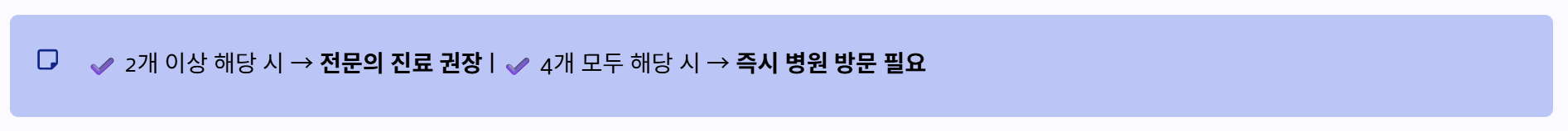 다음과 같은 증상이 있다면 병원 진료를 받는 것이 좋습니다.