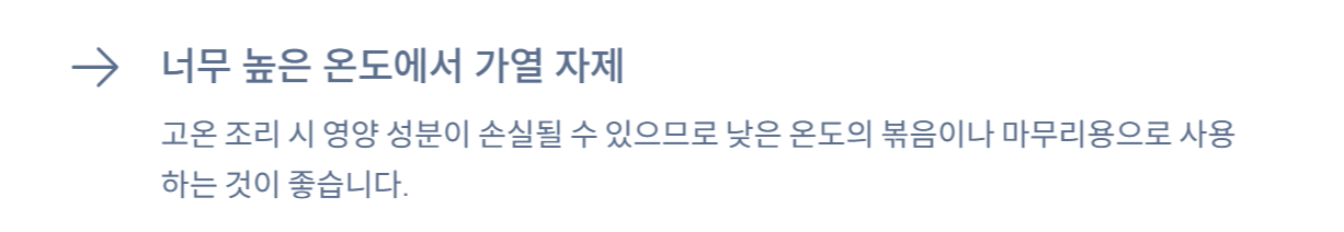 ✔ 너무 높은 온도에서 가열하지 않기