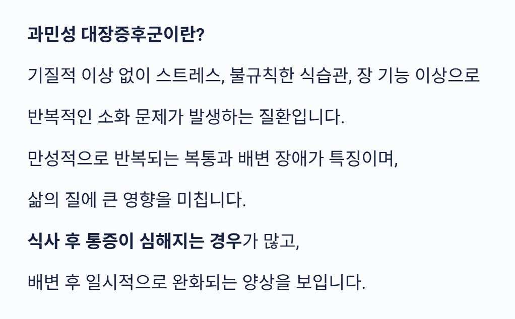 스트레스나 장 기능 문제로 인해 발생하는 질환입니다.