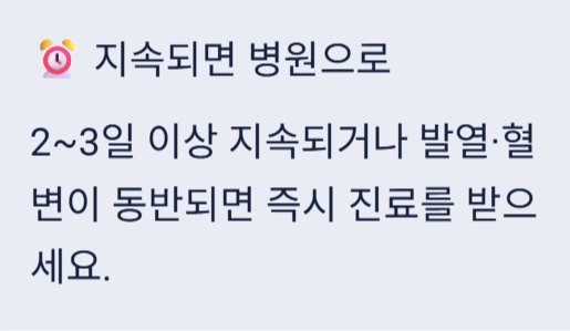 대부분 며칠 내로 호전되지만 심한 경우 병원 진료가 필요합니다.