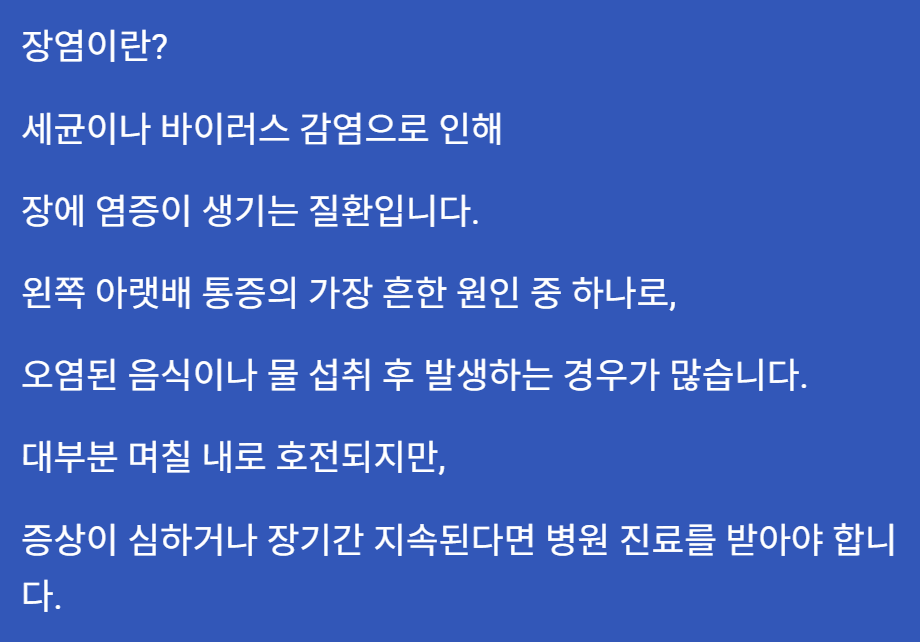 왼쪽 아랫배 통증의 가장 흔한 원인은 장염입니다.