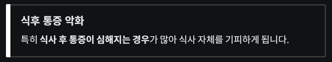 특히 식사 후 통증이 심해지는 경우가 많습니다.