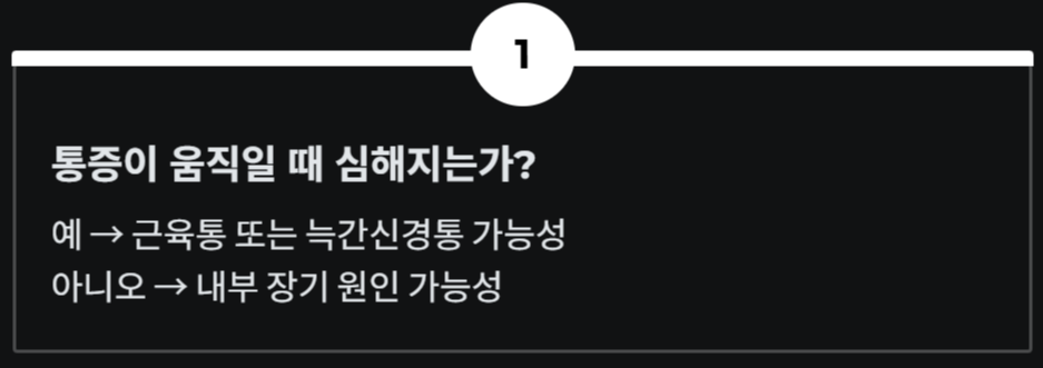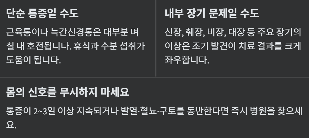 특히 통증이 반복되거나 강도가 점점 심해지는 경우라면