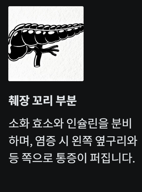 췌장은 복부 중앙에 위치하지만 염증이 생기면 왼쪽 옆구리나 등 쪽 통증이 나타날 수 있습니다.