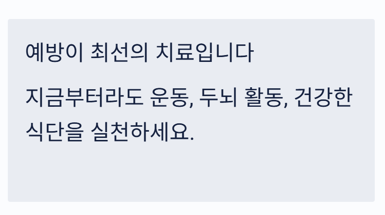 치매 초기증상이 의심되지 않더라도 예방은 중요합니다.