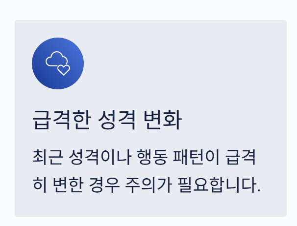 | 본인 인지 | 스스로 자각 | 본인은 모르는 경우 많음 |