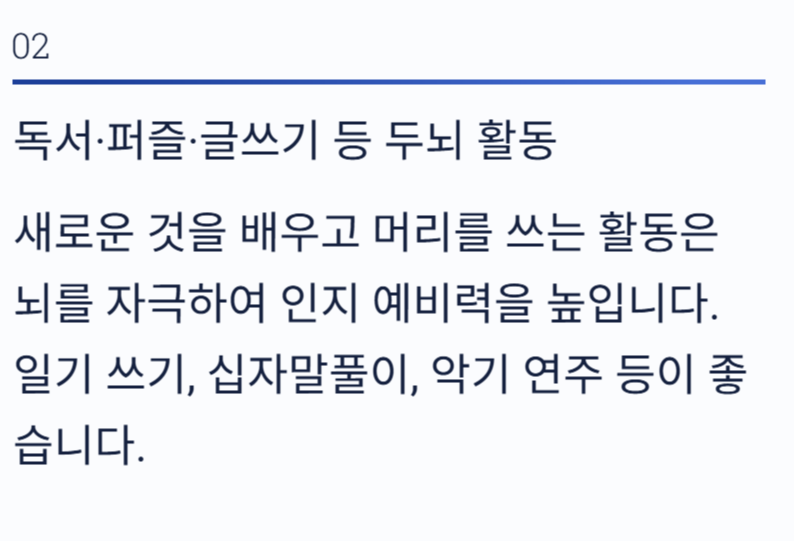 2️⃣ 독서·퍼즐·글쓰기 등 두뇌 활동