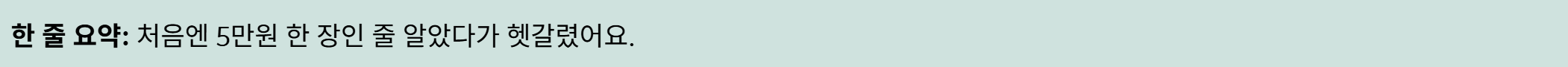 한 줄 후기: “상품권 안 되는 건 조금 아쉬웠어요.”
