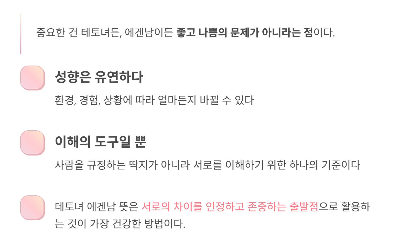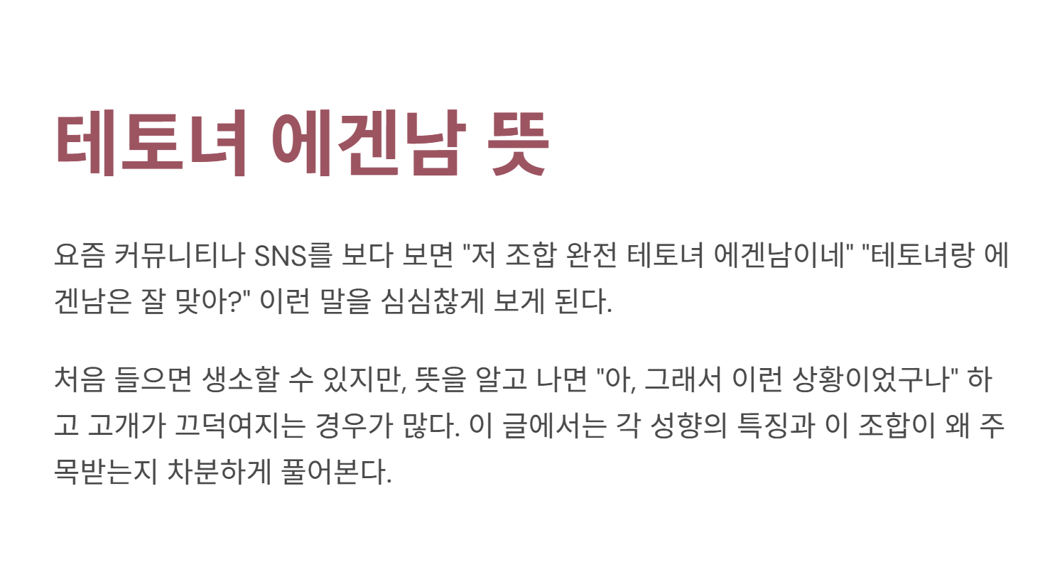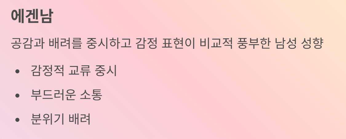 - 에겐남: 감정·공감 중심 성향