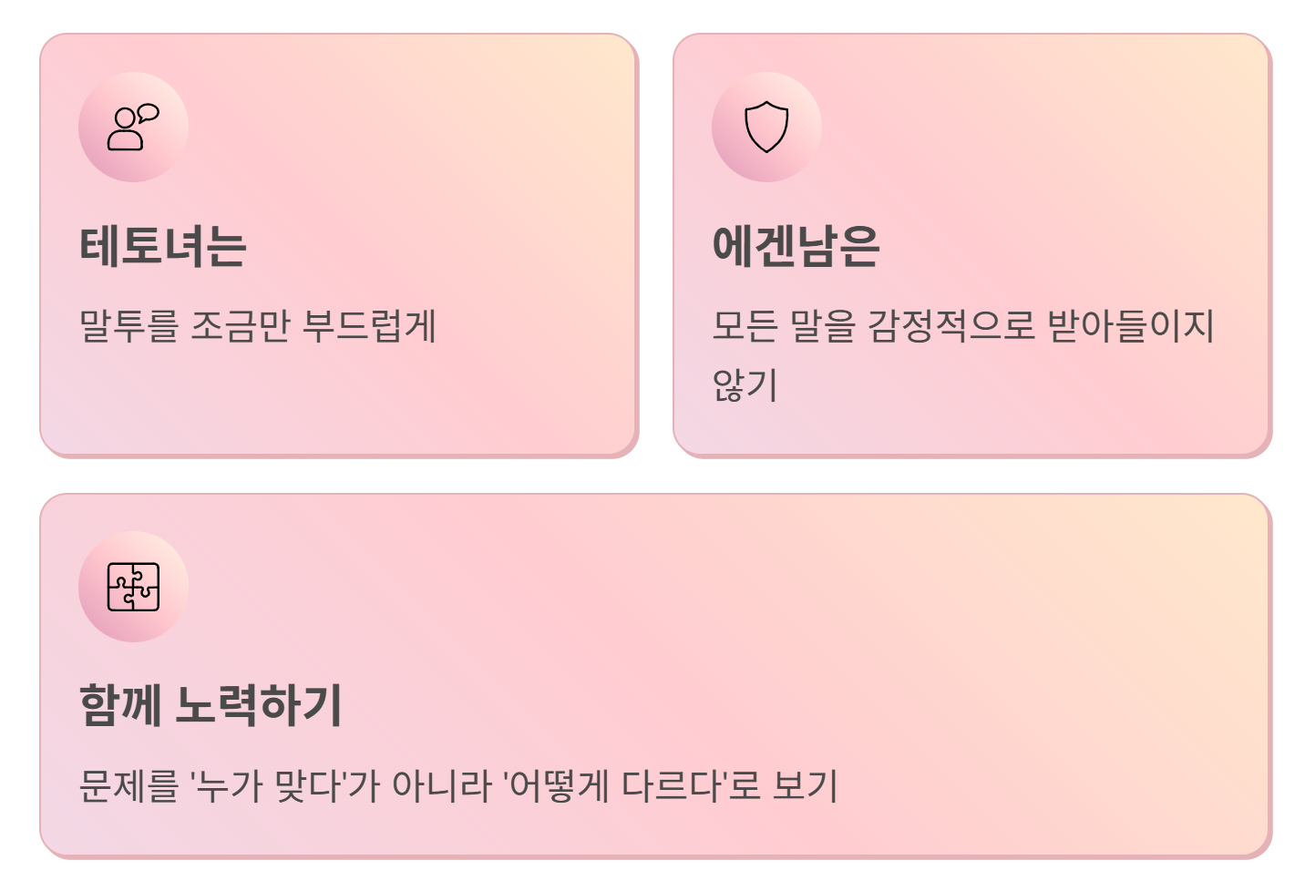 서로 “왜 이렇게 다르지?”라는 생각이 들기 쉽다.