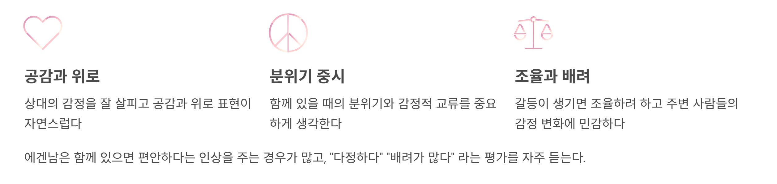 에겐남의 감정적인 배려가 균형을 이룬다.