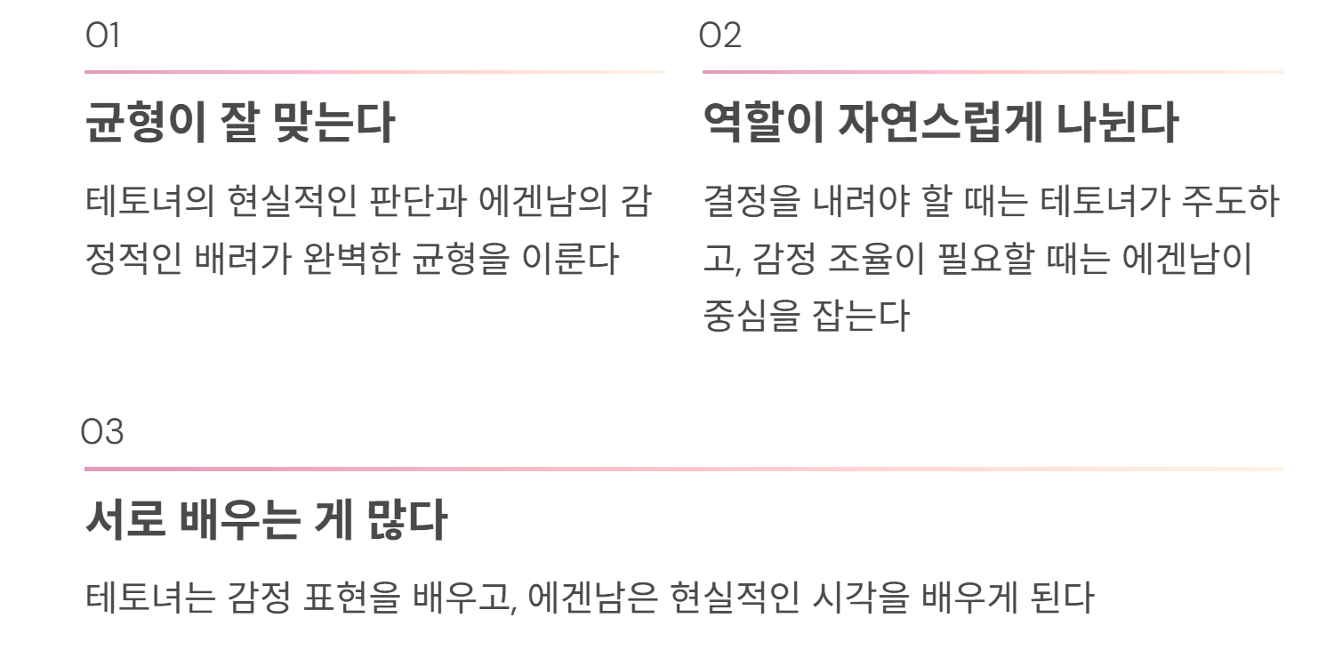 감정 조율이 필요할 때는 에겐남이 중심을 잡는다.