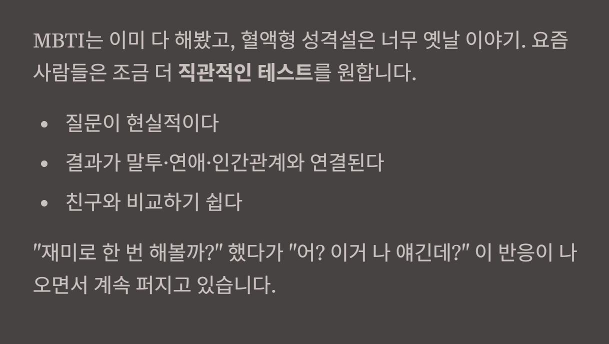 - 결과가 말투·연애·인간관계랑 연결된다