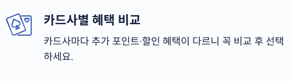 ✔ 카드사별 추가 혜택 비교